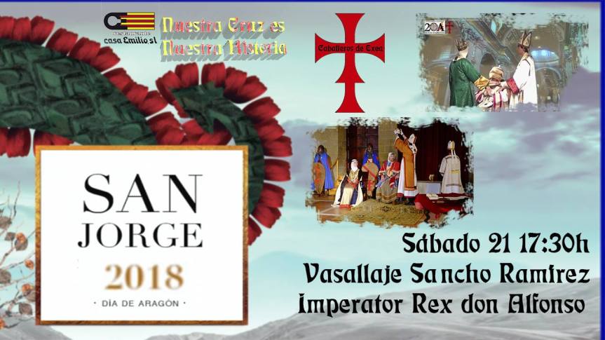 En las jornadas que realiza este año la D.G.A. en conmemoración de la festividad de San Chorche, hemos sido invitados a participar, y acudiremos con nuestros actos del Vasallaje de Sancho Ramírez ante el papá Alejandro II, y con la entronización de don Alfonso I «El batallador» como Imperator Rex de Hispania.